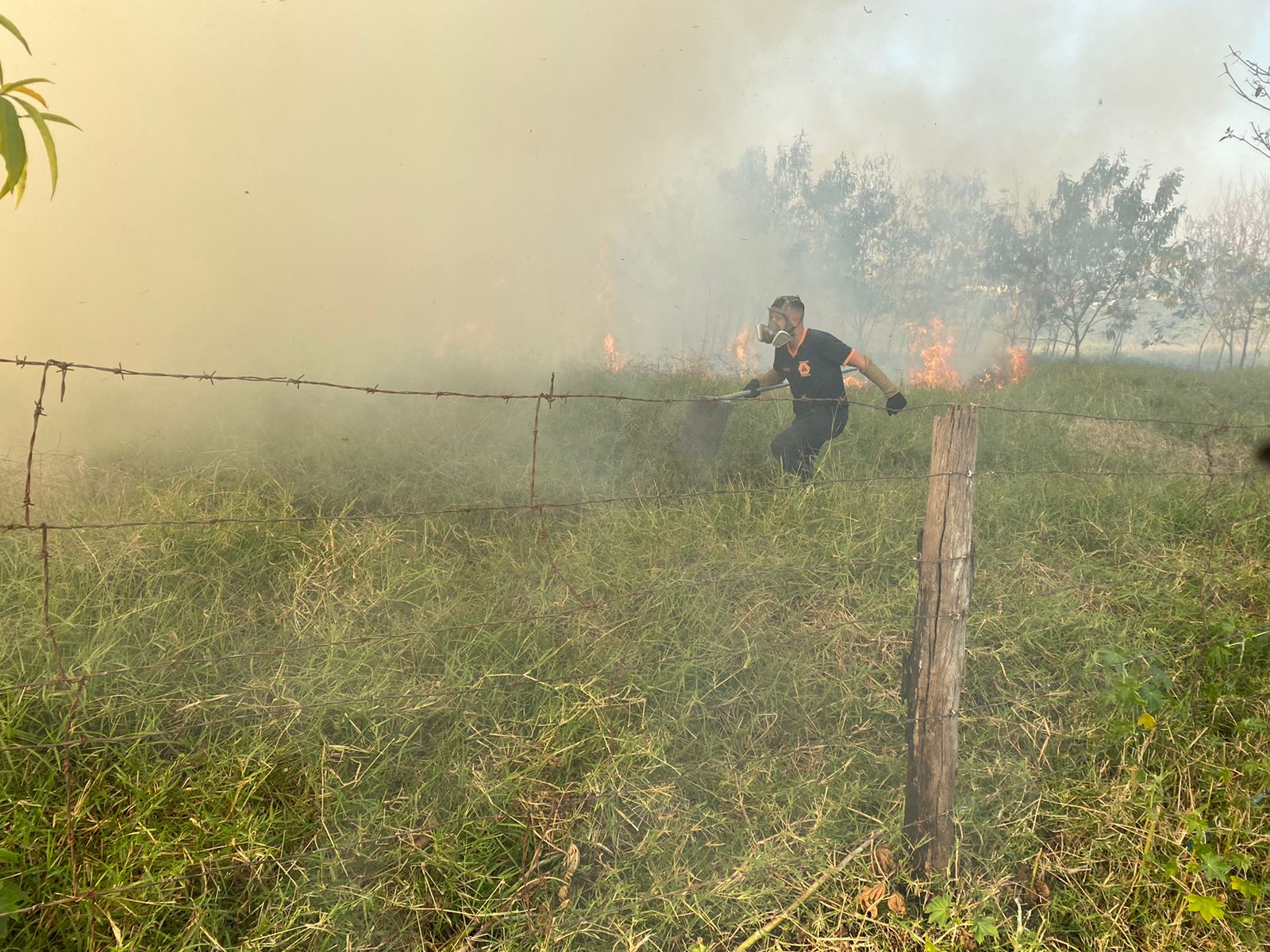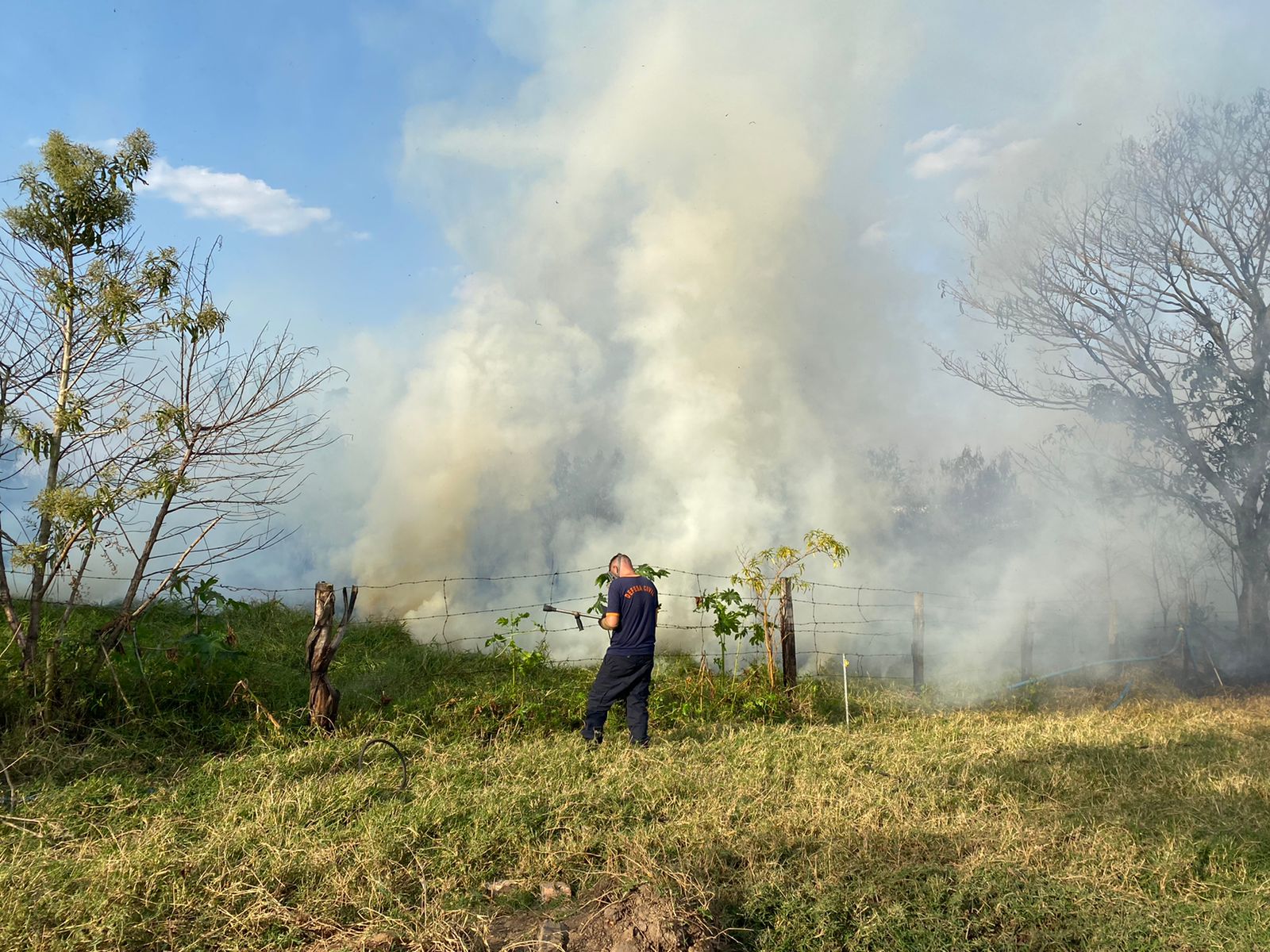 No atendimento da ocorrência, foram necessários dois agentes da Defesa Civil e funcionários da empresa da proximidade para enfrentar as chamas. Foram deslocados para a área, uma caminhonete equipada com um tanque de 500 litros, abafadores e outros equipamentos de combate a incêndio.