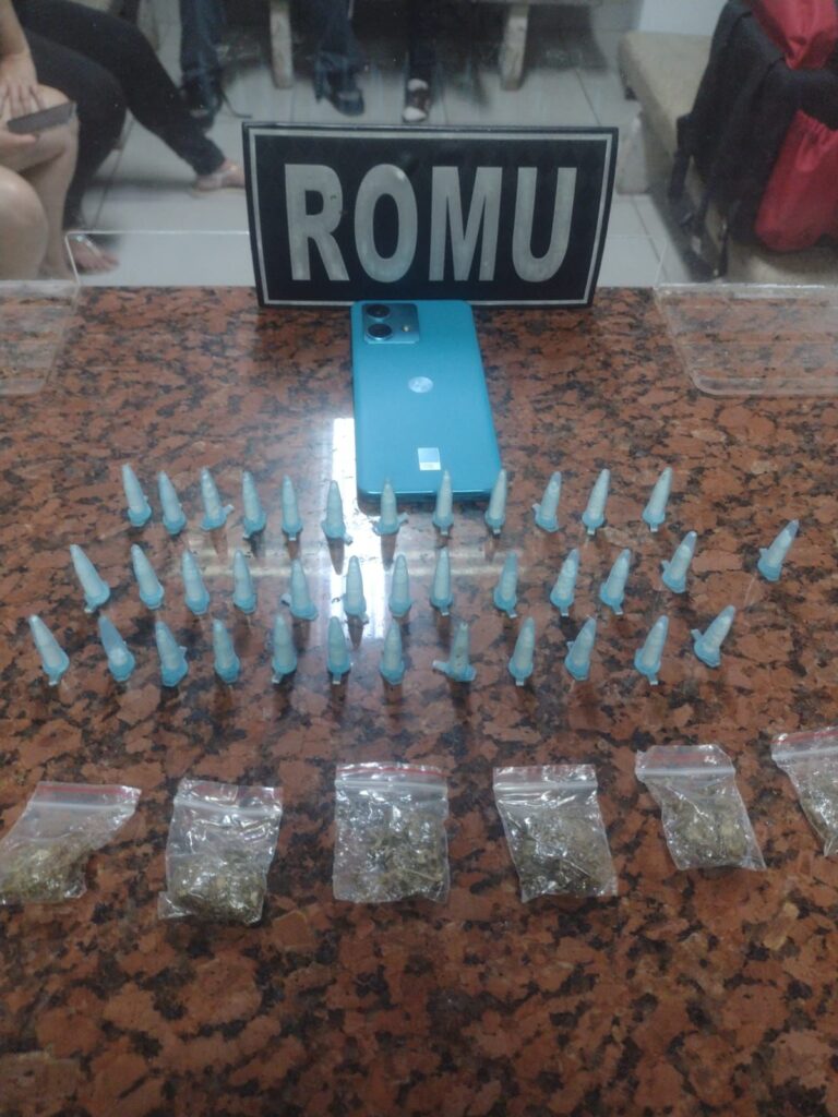 Na abordagem, com um dos suspeitos foram encontradas 20 porções de cocaína. Em revista ao condutor, os guardas localizaram outras 17 porções da mesma substância. Com a ocupante feminina não foi encontrado nada de ilícito; no entanto, no banco traseiro onde ela estava, os agentes localizaram um aparelho celular e mais seis porções de maconha, embaladas em sacos do tipo zip-lock.