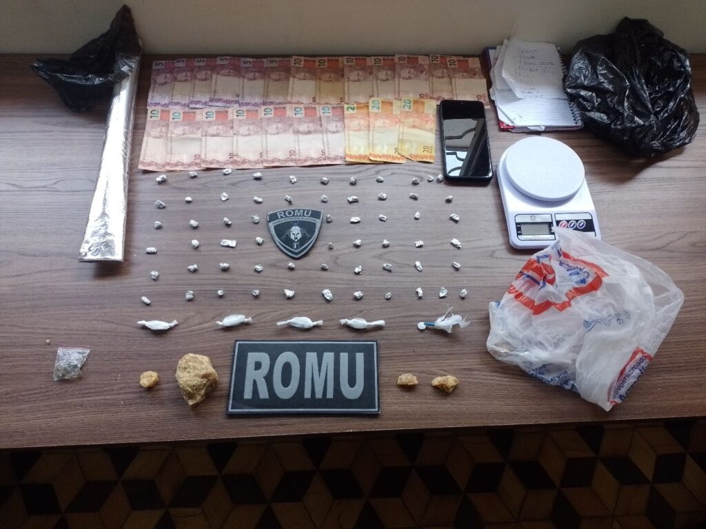 No interior desse saco, foram encontradas quatro pedras brutas de crack e uma balança de precisão. Diante dos fatos, as duas mulheres foram presas e encaminhadas ao Pronto-socorro para exames cautelares e, posteriormente, à delegacia, onde a autoridade policial ratificou a prisão de ambas.